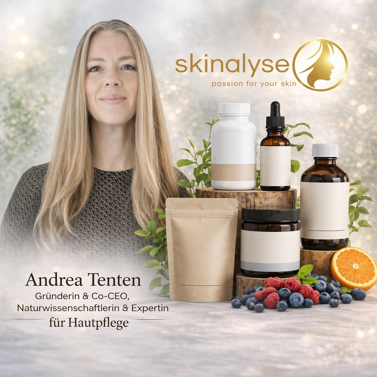 Mit dabei ist Andrea Tenten – Mitgründerin von Skinalyse, Naturwissenschaftlerin und Expertin für Hautpflege.